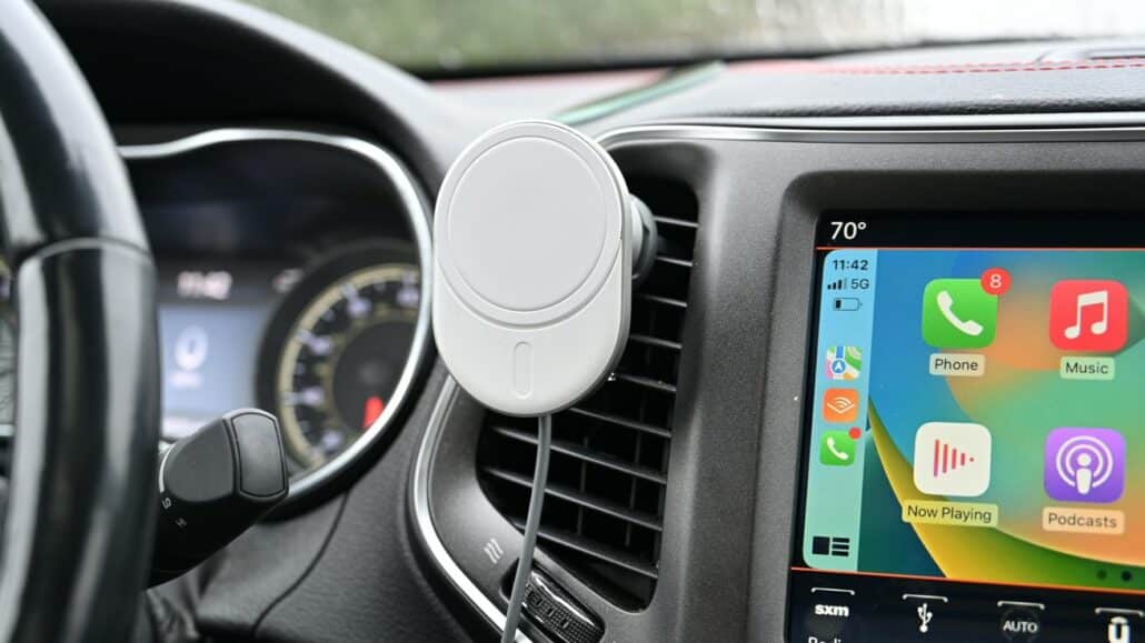 Belkin’s new MagSafe chargerThe aptly named BoostCharge Pro Wireless Car Charger with MagSafe is a simplistic device that delivers what it sets out to do. It’s a vent clip-style mount powered by a USB-C car adapter.