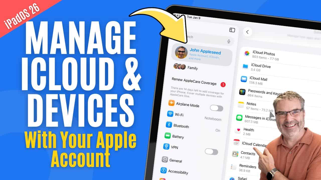 Managing iCloud & Devices with Your Apple Account Your Apple Account is the center of nearly everything you do on your iPad. From syncing your ...