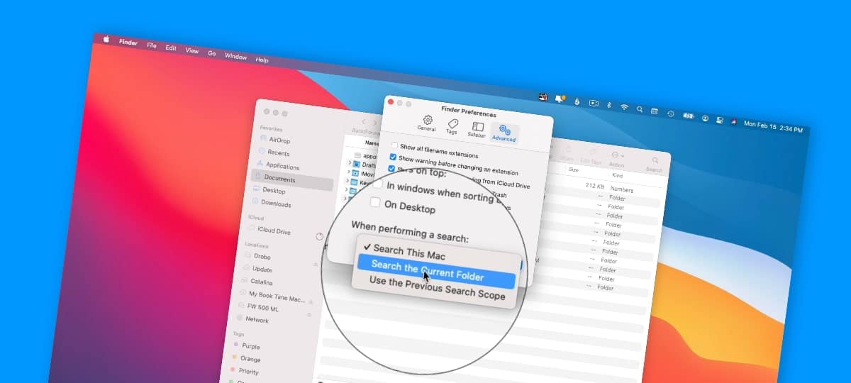 So that’s how you can set while your Mac searches when performing a search in a Finder window.