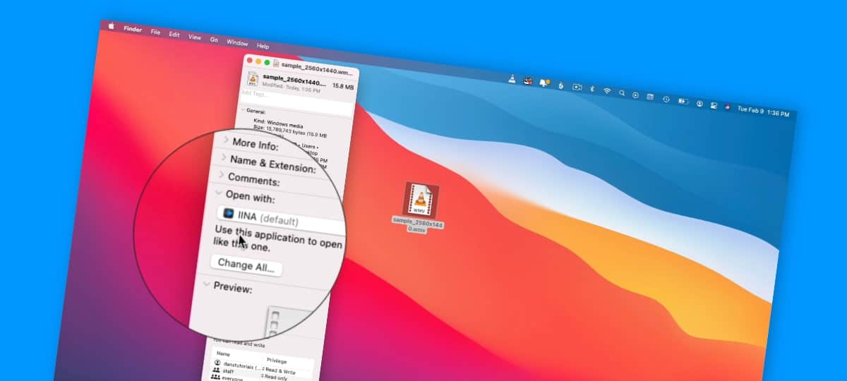 Once you download the application, you just place it into your Applications folder and then do a Get Info on your WMV file. A window will open up, and from there, you can tell your Mac which application you want to use to open up that file. Make sure you click on Change All, so if you have newer files are other files of that same file type, in my case WMV, they will all open up in the app that you specify.