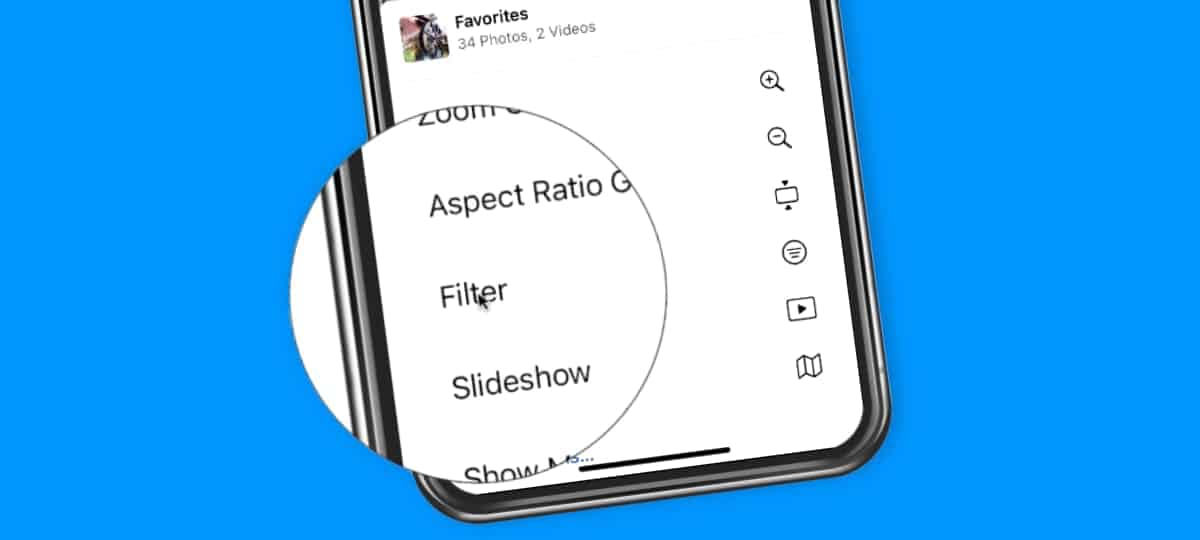 Let’s go and open up my Photos app. So I’m looking at all of my photos here. I’m looking at the library. Let’s go and take a look at one of my albums. I’m going to go over two albums here, and let’s look at my favorites. Now right now, I’m looking at my photos; you’re going to see that this here as a photo, and this here is a video – it has an 11 seconds in the lower right-hand corner. What I would like to do is I would like to filter this further where I’m just looking at my photos. I don’t want to look at my videos. Well, in order to do that, all you have to do is go up to the More button here in the upper right-hand corner. And you’re going to see Filter. From here, what I can do is I can filter my selection further. So right now I’m looking at all of my favorites. When I tap on photos here, I am now looking at only my favorite photos. I’m no longer looking at my videos. My favorite videos. I tap on done. And now I’m just looking at my photos.