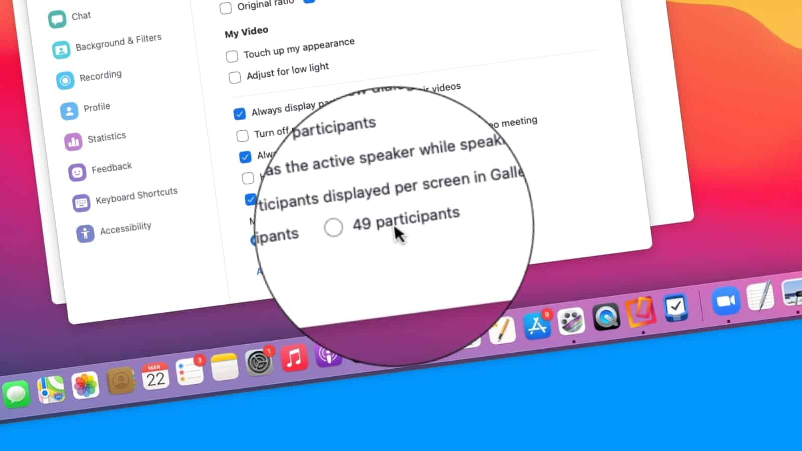 Learn how to set Zoom to show up to 49 participants in a meeting on the Mac.